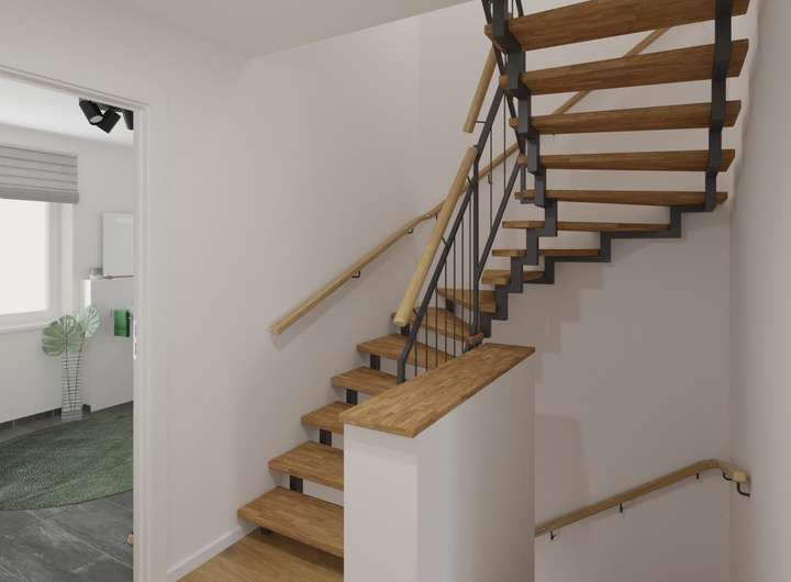 Treten Sie ein in Ihr komfortables Massivhaus und lassen Sie sich von der durchdachten Raumaufteilung begeistern. Der Eingangsbereich führt Sie direkt in die moderne Küche, die mit ihrem offenen Design zum Kochen und Genießen einlädt. Der angrenzende Wohnbereich bietet viel Platz für gemütliche Stunden mit Familie und Freunden. Die Terrasse ist perfekt für entspannte Momente im Freien geeignet. Ein Gäste-WC und ein praktischer Hauswirtschaftsraum runden das Erdgeschoss ab. Oben erwarten Sie drei Schlafzimmer, ideal für eine flexible Nutzung als Schlaf-, Arbeits- oder Hobbyräume. Nachhaltigkeit und Energieeffizienz sind hier selbstverständlich.