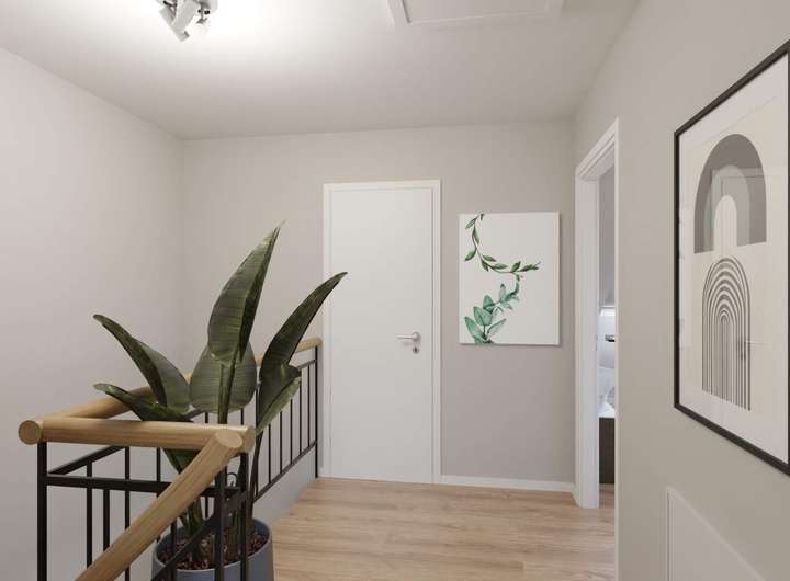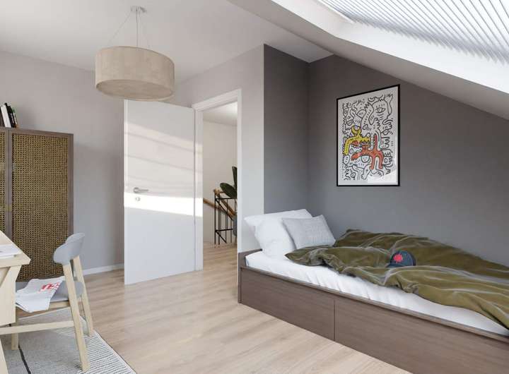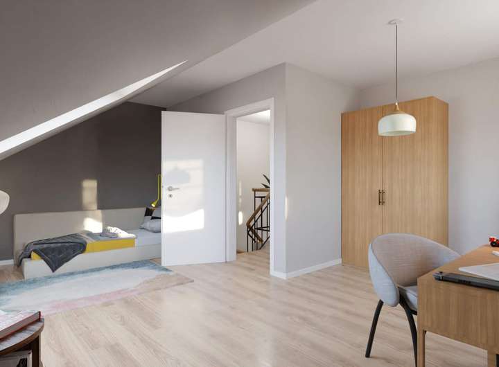 Im Erdgeschoss empfängt Sie ein großzügiger Wohnbereich mit Platz für gemeinsame Stunden ob beim Abendessen, Spielen oder einfach beim Zusammensitzen. Die Küche ist offen gestaltet und geht direkt in den Wohnraum über. Von hier gelangen Sie auf die Terrasse, die an sonnigen Tagen zu Ihrem zweiten Wohnzimmer wird. Im Obergeschoss finden Sie drei helle Zimmer – ideal zum Schlafen, Arbeiten oder für die Kinder. Das Tageslichtbad mit Dusche und Badewanne bringt morgens wie abends ein angenehmes Wohngefühl. Das ausgebaute Dachgeschoss bietet Ihnen zusätzlichen Freiraum: Zwei weitere Zimmer und ein praktischer Abstellbereich warten hier auf Ihre Ideen. Ob Rückzugsort für Teenager, ruhiges Homeoffice oder Gästezimmer hier haben Sie Platz für Ihre Wohnideen.