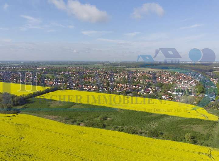 Zum Verkauf steht hier ein großes Grundstück in Randlage von Leegebruch. Die Nachbarbebauung setzt sich aus Einfamilienhäusern zusammen.