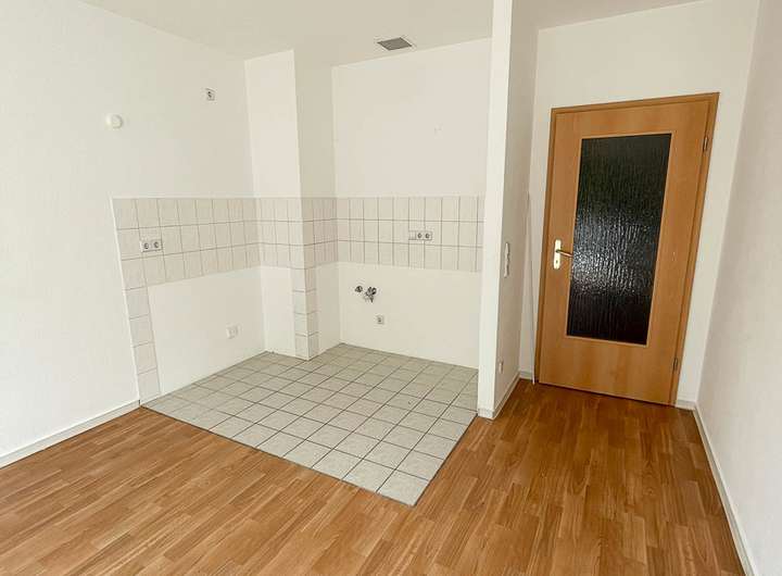 Über den Flur gelangen Sie in hübsche Wohn-Schlafzimmer mit offener Küche, das Badezimmer mit begehbarer Dusche und Waschmaschinenanschluss. Vom Wohn-Schlafzimmer erreichen Sie den großen Balkon, wo sich ruhige Stunden bei Sonnenschein verbringen lassen.