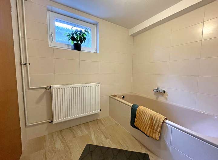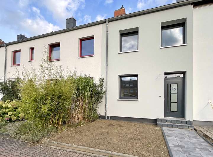 Bei dieser Immobilie handelt es sich um einen Bezug nach Modernisierung im Jahr 2022. Bei der Kernsanierung wurde Wert auf Energieeffizienz gelegt. Das dreistöckige Mittelreihenhaus zeichnet sich durch eine gehobene Innenausstattung aus und kann zum 01.3.2026 bezogen werden. In einem der zwei Badezimmer kann man sich in der morgendlichen Hektik entspannt aus dem Weg gehen. Das Objekt bietet mit vier schönen Zimmern und einem individuellem Grundriss darüber hinaus genügend Platz für ein Leben mit zwei Personen. Besonders schön ist die große Terrasse mit einer neu angelegten Rasenfläche, die Ihnen bei schönem Wetter zu einem regelrechten Outdoor-Zimmer werden kann. Im großzügigen Keller können Waschmaschine, Trockner und Regale trocken untergebracht werden. Für Fahrräder, Kisten oder einzulagernde Gartenmöbel befindet sich im Garten ein Gerätehaus aus Holz. Das Objekt wird per Zentralheizung beheizt. Die monatliche Miete für die Immobilie mit Grundstück beträgt 1.100 Euro netto kalt.