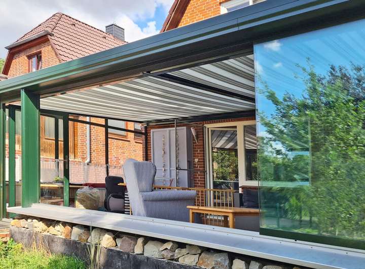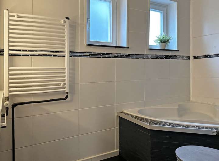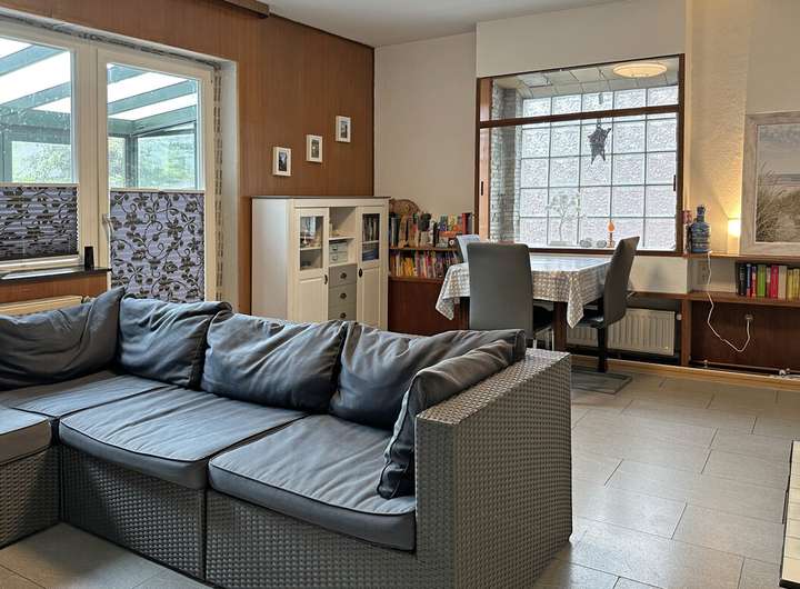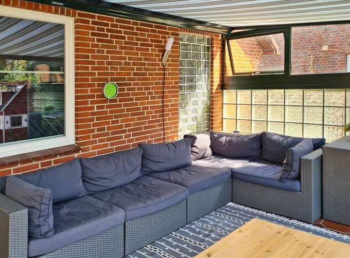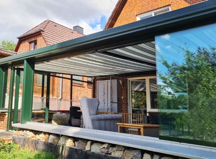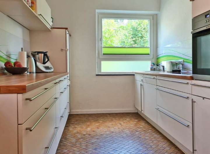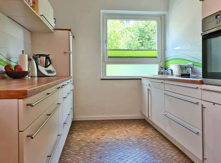 Die Fußböden im Erdgeschoss sind mit Fliesen belegt, das Dachgeschoss wurde mit Laminatboden versehen. Sowohl die Küche als auch das Badezimmer wurden im Jahr 2014 erneuert und modern und geschmackvoll gestaltet. Die Küche wurde mit einer großen Einbauzeile mit hellen Fronten versehen und mit allen erforderlichen Elektrogeräten ausgestattet. Im Badezimmer wurde im Zuge der Renovierung eine große Eckbadewanne eingebaut, ein Handtuchheizkörper sorgt für zusätzlichen Komfort. Der im Jahr 2018 angebaute, großzügige Wintergarten ist komplett verglast und wirkt dadurch besonders hell und freundlich. Die Glaselemente zur Gartenseite lassen sich vollständig öffnen, sodass der Wintergarten bei jedem Wetter optimal genutzt werden kann. Eine weitere Besonderheit ist die große und innenliegende Markise, die auch an heißen Tage für ausreichend Schatten sorgt. Sämtliche Fenster sind isolierverglast und in Holz gefasst und stammen aus dem Jahr 2017.