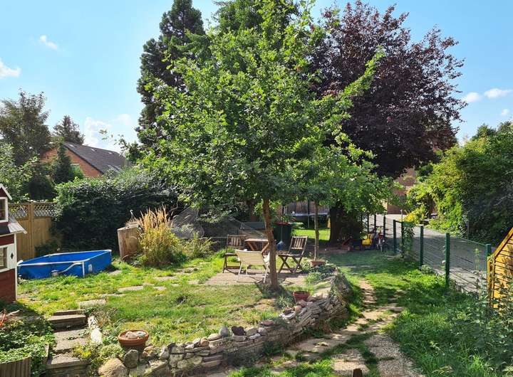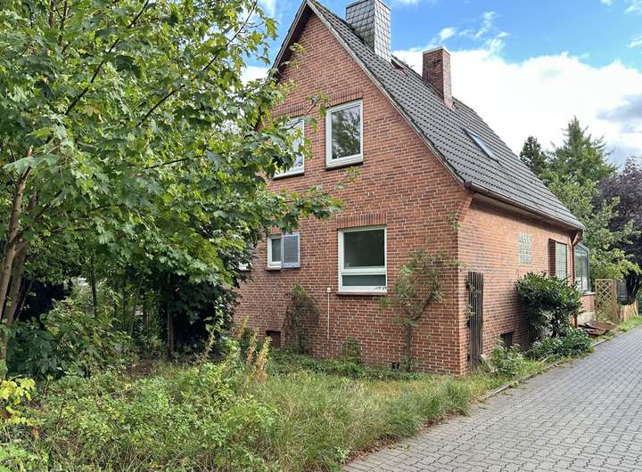 Dieses Einfamilienhaus wurde 1962 in massiver Bauweise mit Keller im beliebten Alt-Nettelnburg errichtet. Über den Flur gelangen Sie in alle Räume des Erdgeschosses. Das große, lichtdurchflutete Wohnzimmer bietet Zugang zum Arbeitszimmer und zum 2014 angebauten Wintergarten mit Blick in den Garten. Die Küche ist mit moderner Einbauzeile und zweiter Arbeitsfläche ausgestattet. Ein helles Wannenbad mit zwei Fenstern ergänzt das Raumangebot. Über eine geschlossene Treppe erreichen Sie das Dachgeschoss mit Elternschlafzimmer sowie zwei Kinderzimmern, die derzeit durch einen Durchbruch verbunden sind, aber leicht wieder getrennt werden können. Im Keller stehen ein Hauswirtschaftsraum, eine Werkstatt, ein Hobbyraum und ein Vorratsraum zur Verfügung. Die Heizungsanlage von 1988 muss erneuert werden, Warmwasser erfolgt über Durchlauferhitzer. Das nach Südwesten ausgerichtete Grundstück ist pflegeleicht angelegt und bietet eine Terrasse sowie zwei PKW-Stellplätze. Das Grundstück ist ideell geteilt, Gesamtgröße ca. 1.774 m², wovon ca. 608 m² auf dieses Haus entfallen. Jedes der drei Häuser ist eigenständig, Wohngeld fällt nicht an.