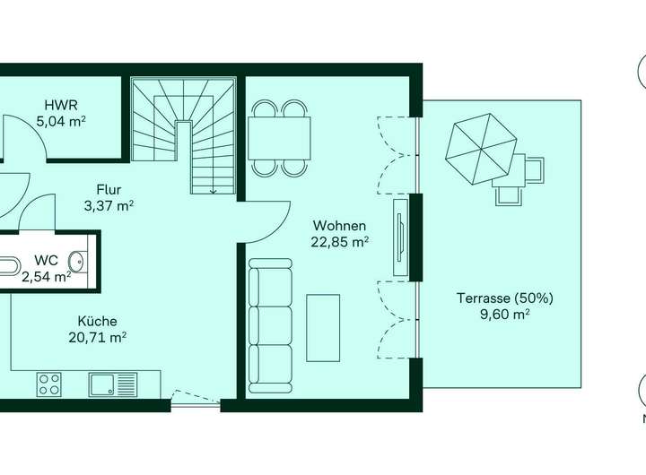 Willkommen in Ihrem neuen Zuhause mit vier Zimmern. Genießen Sie Ihre Zeit auf der Terrasse und profitieren Sie von der Ausbaureserve im Dach.