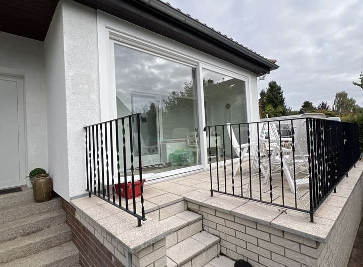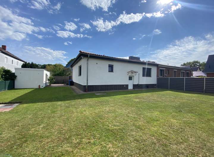gepflegter und bezugsfertiger Bungalow, teilunterkellert mit Gäste-WC und großzügigem Hobbyraum/Gästezimmer, Fliesen und Fußbodenheizung in Flur und Küche und Bad frisch modernisiert, Isolierglasfenster mit elektrischen Rollläden und Fliegengittern, Dachneueindeckung 2014, Garage und Geräteschuppen im Garten