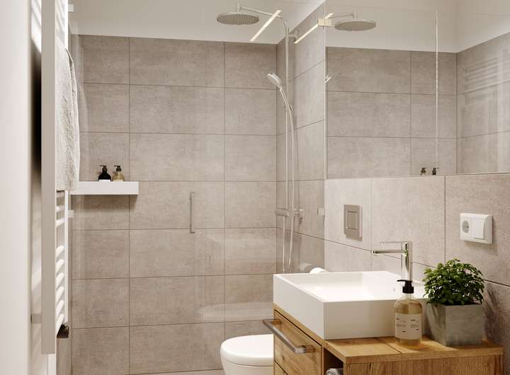 • hochwertige Badausstattung inkl. Regendusche und Handtuchheizkörper