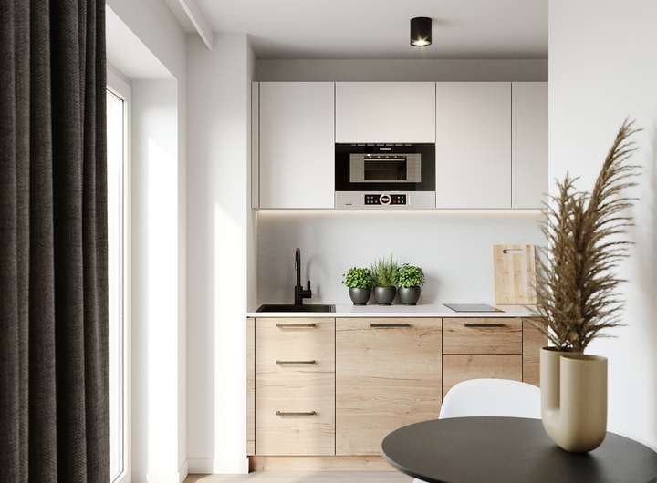• Jedes Apartment hat eine stilvolle und praktische Küchenzeile inklusive Geräte