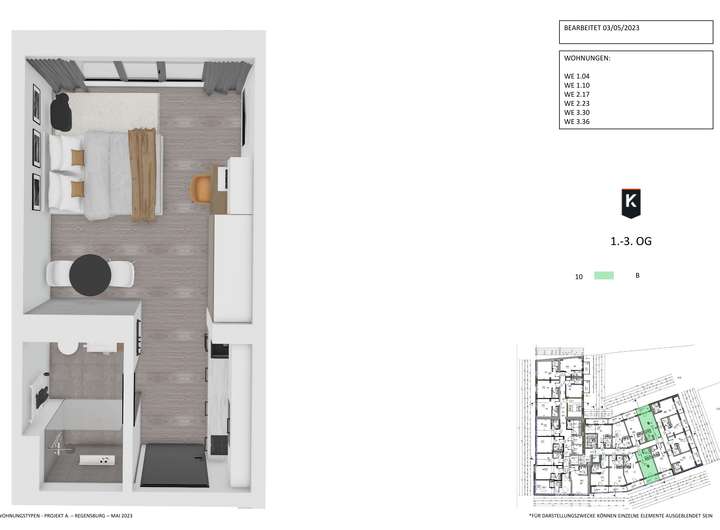 Sämtliche in diesem Prospekt enthaltenen Angaben sollen dem Interessenten eine allgemeine Information ermöglichen. Änderungen gegenüber dem Stand der Planungen bei Prospektherausgabe sind zwar nicht vorgesehen, können jedoch aus technischen oder terminlichen Gründen eintreten. Daher ist eine Haftung für die Richtigkeit der Angaben oder für die Verletzung eventueller Aufklärungspflichten auf Vorsatz oder grobe Fahrlässigkeit beschränkt. Die Gebäudeabbildungen und Illustrationen sind nicht plan-, maßstabs- und farbverbindlich sondern stellen lediglich die Sicht des Illustrators dar. Die dargestellten Visualisierungen enthalten Sonderausstattung. Gültig für alle dargestellten Grundrisse: Alle Flächenangaben ohne Gewähr. Die Angaben, Visualisierungen und Beschreibungen spiegeln den aktuellen Planstand wider. Im Zuge der Ausführungsplanung können sich Änderungen ergeben. Die Größe der Wohnungen wurde auf Grundlage der WoFIV berechnet, jedoch mit folgenden zusätzlichen, teilweise von der WoFIV abweichenden Maßgaben: Die Berechnung erfolgt ohne Putz- und Fliesenabzug (d. h. nach Rohbaumaßen) und die Nischen aller bodentiefen Fenster und Fenstertüren sind mit ihren Grundflächen angesetzt wurden mit 50 % ihrer Grundfläche angesetzt, ebenso die außenliegenden Nischen aller bodentiefen Fenster und Fenstertüren. Maßgebend für Ausführung und Leistungsumfang ist lediglich der notarielle Kaufvertrag.