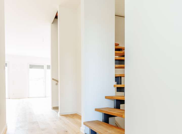 Die Maisonettewohnung I 47 umfasst fünf Zimmer und erstreckt sich über drei Ebenen. Zusätzlich zum Haupteingang im Erdgeschoss besteht eine bequeme Verbindung von der Tiefgarage direkt in die Wohung im Kellergeschoss.