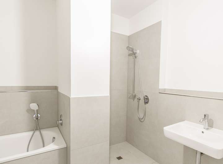 Angegebene Wohnungsgrößen sind Rohbaumaße laut Aufteilungsplänen. Geringe Abweichungen sind noch möglich. Eine Verrechnung von Mehr- oder Minderflächen erfolgt nicht. Die Anrechnung der Balkone erfolgte zur Hälfte, die der Terrassen zu einem Viertel. Irrtum und Änderungen sowie Zwischenverkauf bleiben vorbehalten.