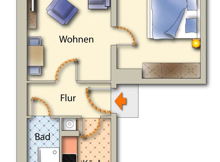 Nur wenige Treppenstufen sind es bis zu Ihrer Erdgeschosswohnung mit zwei Zimmern. Im Bad ist eine ebenerdige Dusche eingebaut. Also ideal für Senioren. Alle Räume haben Tageslicht und sorgen so für eine Wohlfühlatmosphäre. Kontaktieren Sie uns schnell.
