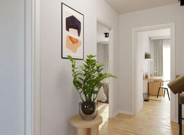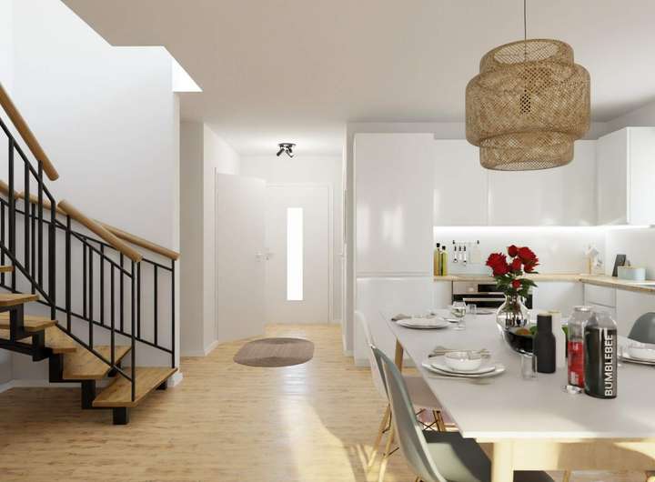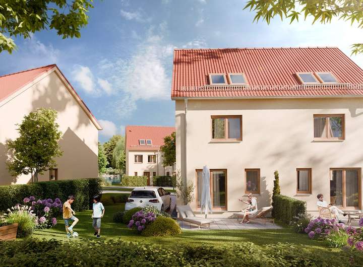 Dieses moderne Doppelhaus bietet Ihnen fünf großzügige Zimmer auf zwei Ebenen. Im Erdgeschoss erwartet Sie ein offener Wohn- und Essbereich mit direktem Zugang zur Terrasse, perfekt für gesellige Abende mit Freunden und Familie. Die offene Küche bietet ausreichend Platz für kulinarische Kreationen. Im Obergeschoss befinden sich drei helle Zimmer und das modernes Tageslichtbad mit Dusche und Badewanne. Gerne beraten wir Sie zum Ausbau des Dachgeschosses. Nutzen Sie das zusätzliche Raumangebot ganz nach Ihren Bedürfnissen – sei es als Schlafzimmer, Gästezimmer oder Homeoffice, jetzt oder in Zukunft.