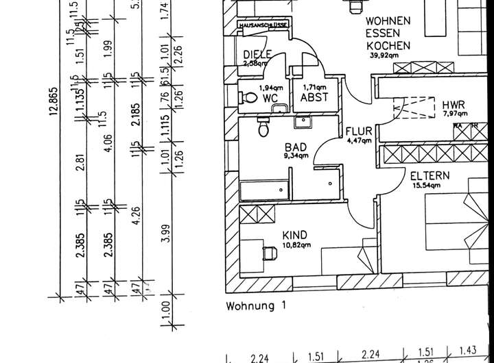 | Gesamtmiete | 1.275 € (zzgl. Heizkosten) |