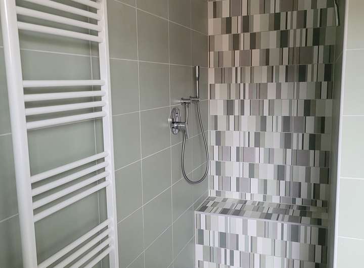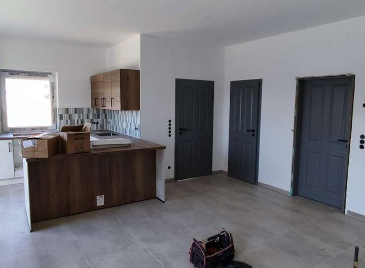 Großzügiger Hauswirtschaftsraum mit Anschlüssen für Waschmaschine und Trockner und Platz für Vorräte und einen Gefrierschrank. Bad mit ebenerdiger Dusche und Doppelwaschbecken. Separate Gästetoilette. Toilette, Bad und Küche sind mit italienischen Designfliesen ausgestattet. Alle Böden im Haus haben eine 60x60cm Bodenfliese. Die Fußbodenheizung wird durch eine effiziente Erdwärmepumpe betrieben (keine Gaskosten). Alle dreifachverglasten Fenster verfügen über elektrische Rollläden. Die Wände sind verputzt und weiß gestrichen. Der Dachboden eignet sich als geräumiger Kellerersatz.