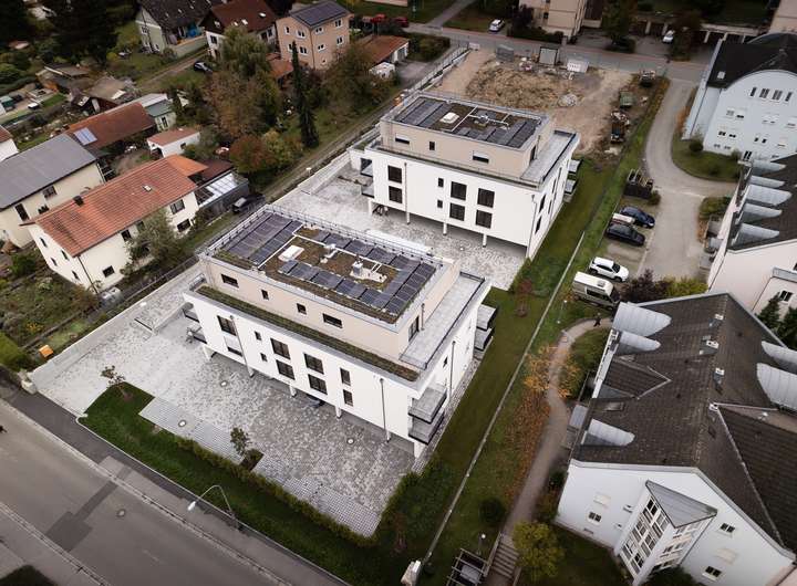 Hier entstehen helle und offene Wohnungen mit ansprechenden Grundrissen und Zimmeraufteilungen. Highlight der Gebäude sind die umweltfreundlichen Heiz- und Stromerzeugungssysteme.