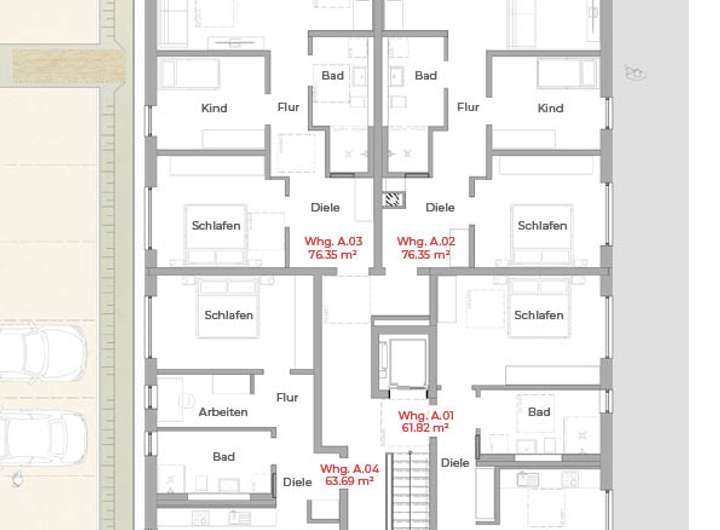 Hier angeboten werden nur die Wohnungen der Häuser A und B.