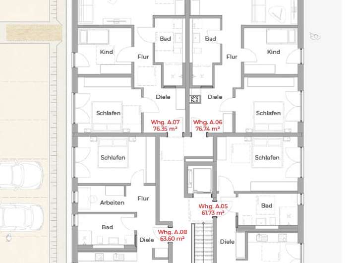 Hier angeboten werden nur die Wohnungen der Häuser A und B.