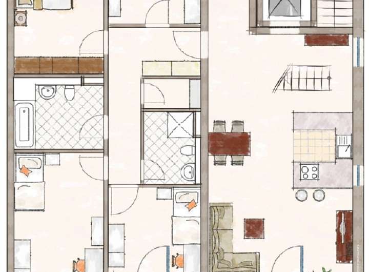 4. Bodenbelag nach Wahl in allen Wohn-, Ess- und Schlafräumen. Leicht zu pflegen und schön anzusehen.