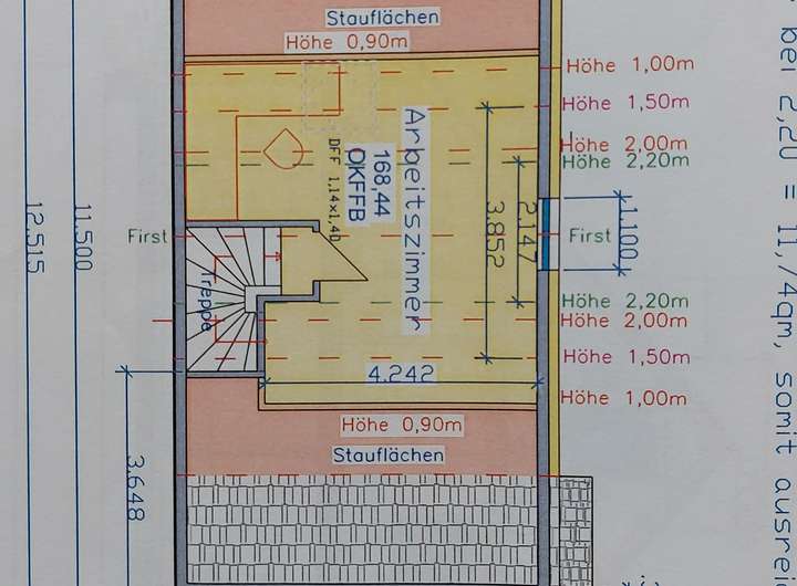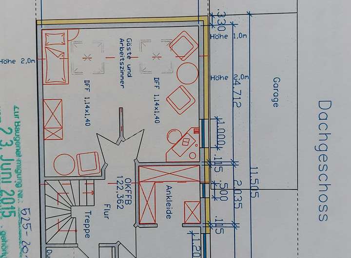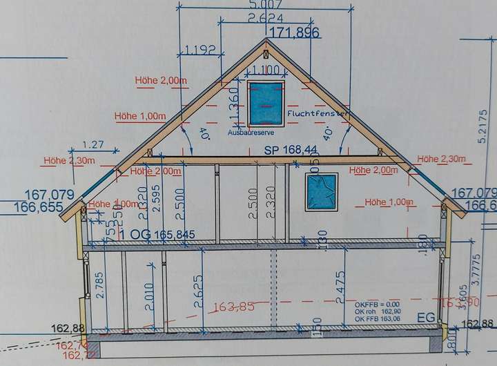 Die beiden kleinen Zimmer im OG sind mittlerweile (anders als im Grundriss eingezeichnet) über eine Ständerwerkkonstruktion voneinander getrennt.