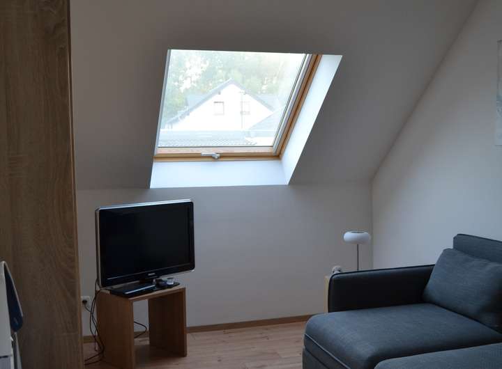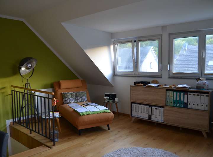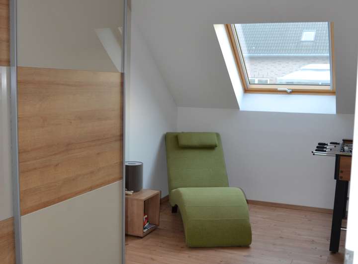 Das Dachgeschoss ist als Dachstudio ausgebaut. Hier liegt Parkett und es ist eine Gaube vorhanden. Dieser Raum wird über einen Heizkörper geheizt.