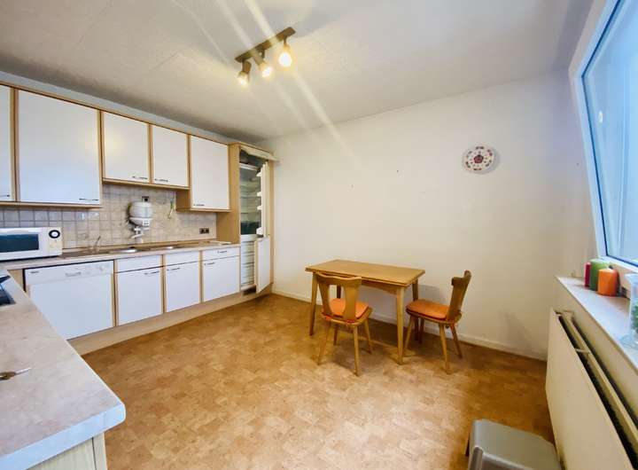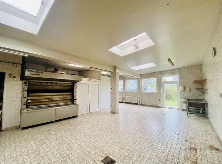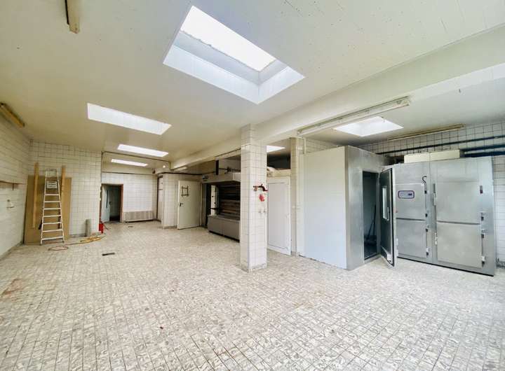Zum Verkauf steht ein Wohn-Geschäftshaus mit Garten und einer kleinen Dachterrasse. Das Haus verfügt im Erdgeschoss über eine Gewerbefläche vom rund 30m², die zuletzt als Imbiss genutzt wurde. Davor befand sich dort eine alteingesessene Bäckerei. Angrenzend an die Gewerbefläche gibt es einen weiteren Raum mit rund 12m² der als Lager oder Vorbereitungsküche genutzt werden kann. Ebenso ist ein Kunden-WC vorhanden. Nach hintenraus befindet sich die große Backstube der ehemaligen Bäckerei mit über 100m², die wieder in Betrieb genommen werden könnte oder als individuelle Gewerbefläche genutzt werden kann. Von der Backstube aus haben Sie direkten Zugang zum Garten.