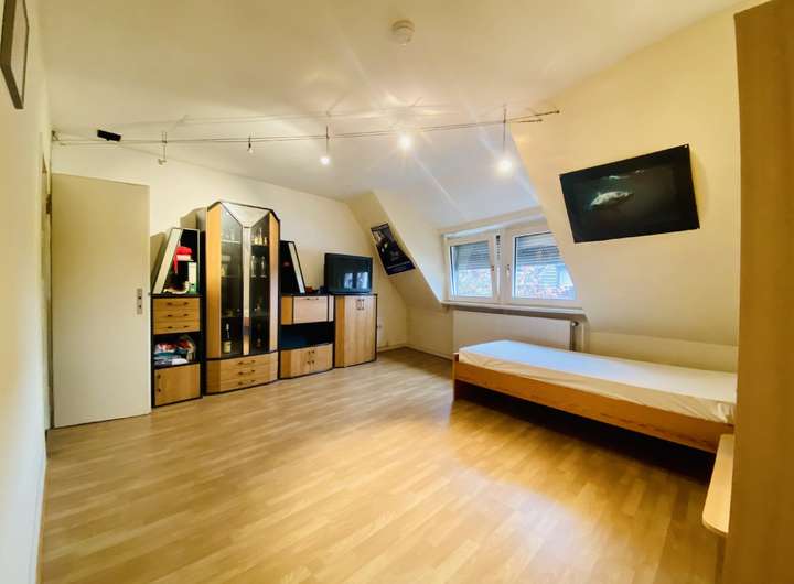 Im Dachgeschoss befinden sich drei potentielle Schlafzimmer sowie ein Badezimmer mit Dusche. Das Haus besitzt einen Heizkeller mit Öltank, der restliche Keller bietet ausreichend Stauraumfläche.