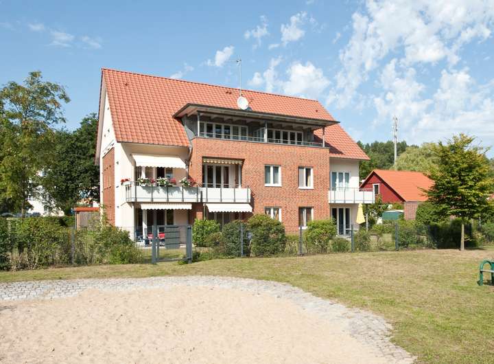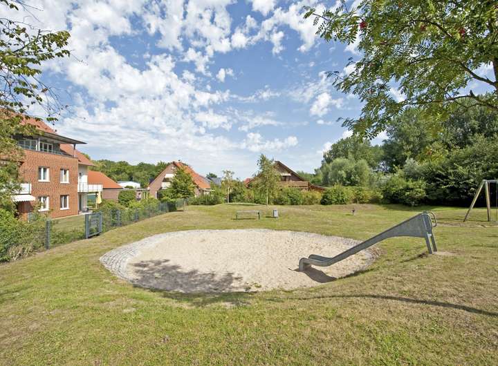 Die sehr geräumige und vollständig eingerichtete 2- Zimmer- Eigentumswohnung mit Terrasse liegt zur Südseite mit einem Blick auf die umliegende Landschaft und den nur für die Bewohner/ Besucher des Hauses zur Verfügung stehenden hauseigenen, umzäunten Kinderspielplatz.
