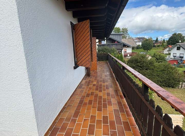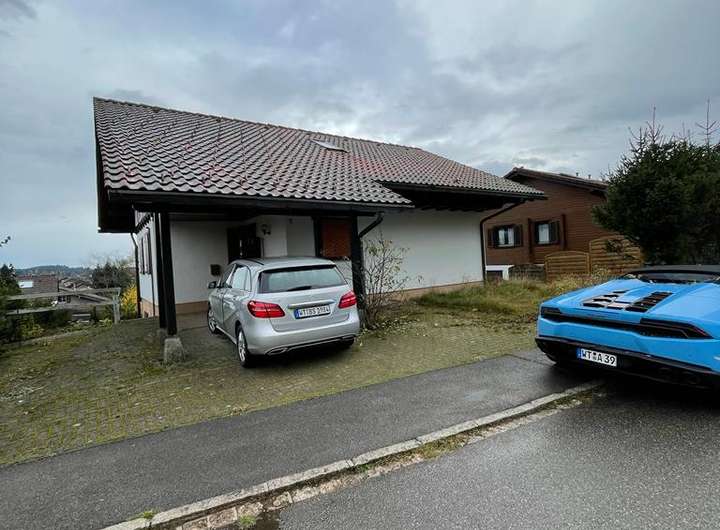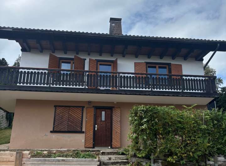 Es handelt sich hier um ein Einfamilienhaus mit Balkon und ein Garten.