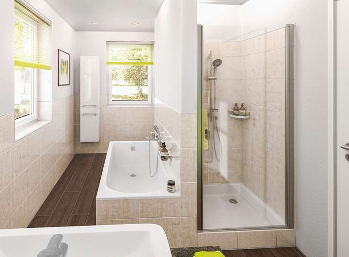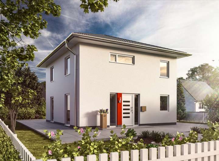 Die kubische Form ist der Klassiker im Stadthausdesign und prägt auch das Aussehen unseres Stadthaus Flair 124. Im Inneren setzt sich der urbane Stil fort: der großzügige Wohn- und Essbereich erstreckt sich über die gesamte Hausbreite und ist das Herzstück des Hauses. Große Fenster lassen viel Tageslicht hinein und führen gleich hinaus zu Ihrem Wohnzimmer im Grünen – der Terrasse.