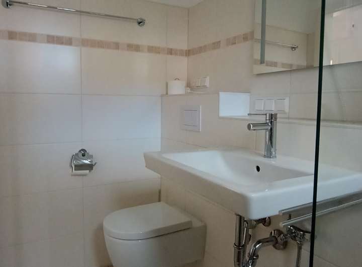 Das Gebäude wurde komplett saniert. Bäder sind neu gefliest