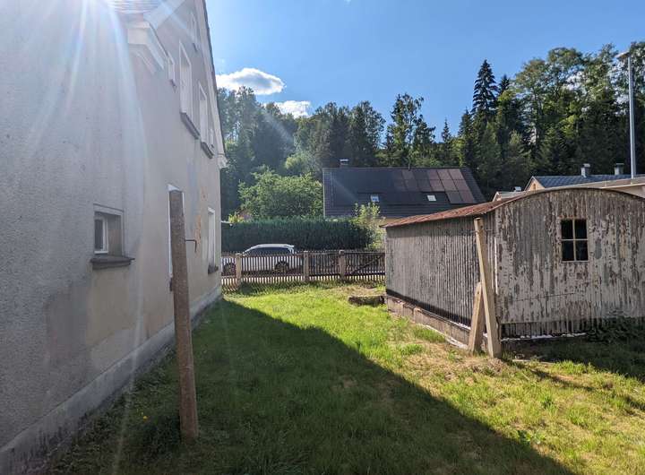 Auf dem Grundstück befindet sich noch ein kleines Nebengelass, ideal für Gartengeräte oder Werkzeug. Des Weiteren befindet sich im Garten eine kleine DDR Garage.