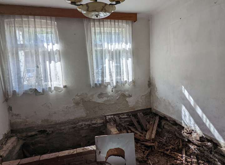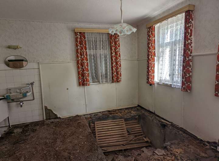 Früher versorgten Kachelöfen das Haus mit Wärme, diese wurden aber schon seit mehreren Jahren nicht mehr genutzt.