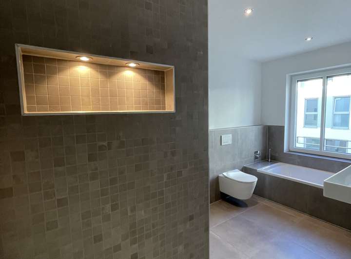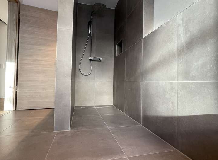 -Begehbare, offene Dusche m. Abstellnische