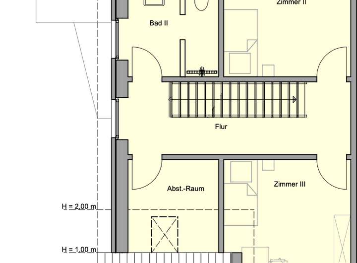 Das Haus verfügt über insgesamt drei Schlafzimmer, davon eins im Erdgeschoss mit unmittelbarer Nähe zum Duschbad. Ideal für Gäste, ältere Familienmitglieder oder Personen, die Wohnen und Schlafen auf einer Ebene bevorzugen.
