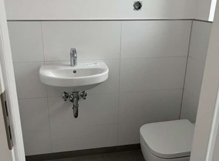 Das Hauptbadezimmer sowie das Gäste-WC sind mit Boden und Wandfliesen ausgestattet. Ein zusätzlicher Pluspunkt ist die im Hausanschlussraum eingebaute Dusche.
