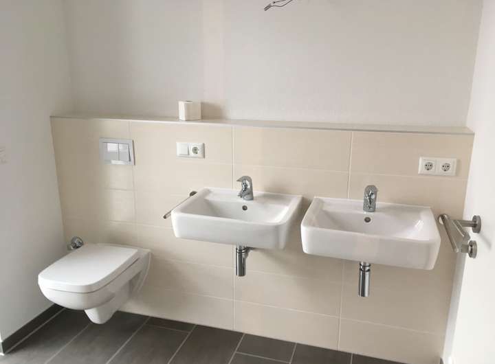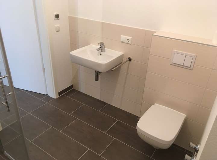 Die Wohnung verfügt über zwei Bäder. Ein Wannenbad mit Fenster und ein Badezimmer mit ebenerdiger Dusche.