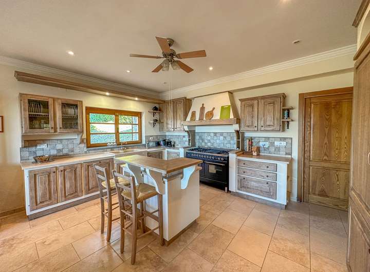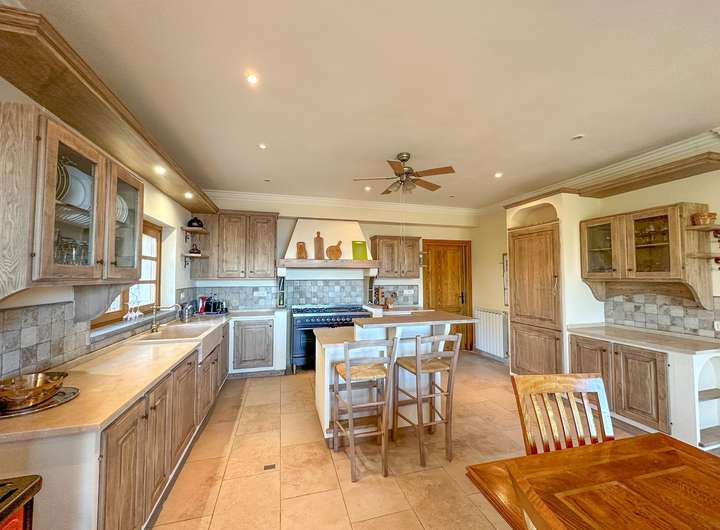 Offene Kamine in der großen, vollausgestatteten Landhausküche und im Wohnzimmer machen ein besonderes Wohnambiente aus.