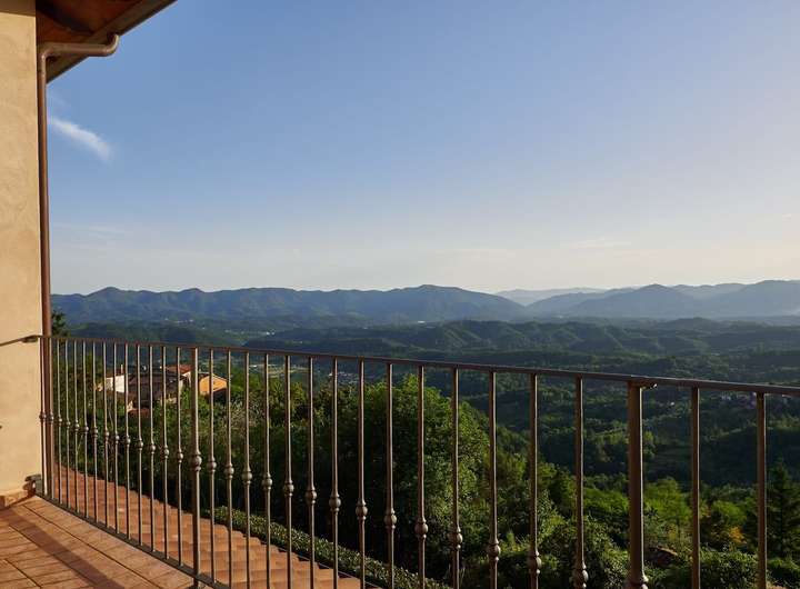 Von den Terrassen und Balkonen aus hat man einen atemberaubenden Ausblick in die saftig-grünen Hügel der Nordtoskana.