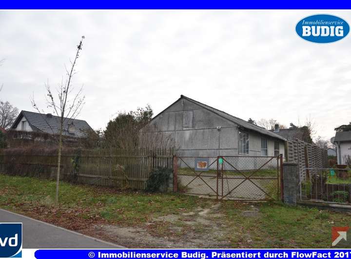 Das nach Süden ausgerichtete Grundstück mit einer Größe von ca. 800 m² liegt in einer ruhigen, gewachsenen Wohngegend mit vereinzelten stillen Gewerbeanteilen. Die Straßenfront beträgt ungefähr 20 Meter. Im vorderen Bereich befindet sich eine ca. 100 m² große Halle in Leichtbauweise, die bisher als Werkstatt und Lager genutzt wurde. Um auf dem Grundstück ein Einfamilienhaus errichten zu können, muss diese Halle zurückgebaut werden. Dach und Fassade sind teilweise mit Asbest verkleidet. Dies sollte bei der Kalkulation der Abrisskosten berücksichtigt werden. Im hinteren Grundstücksbereich erstreckt sich, auch über das Nachbarflurstück reichend, eine massive Werkstatt in Ziegelbauweise. Diese Werkstatt befindet sich in einem guten, soliden Zustand. Je nach geplantem Bauvorhaben kann dieses Gebäude erhalten bleiben und für Hobby oder Gewerbe weiter genutzt werden. Genaue Abstimmungen und Rechtssicherheit lassen sich nur über eine kostenpflichtige Bauvoranfrage beim zuständigen Bauordnungsamt erzielen. Die Werkstatt ist auf der Grundstücksgrenze lediglich durch Holzplatten vom Nachbargebäude getrennt. Wenn sie weiterhin genutzt werden soll, ist die Errichtung einer Brandschutzwand notwendig.