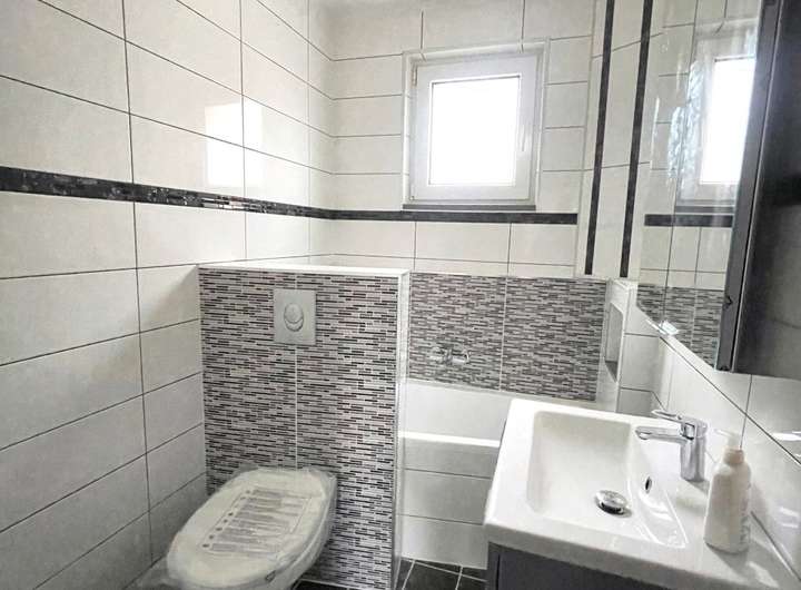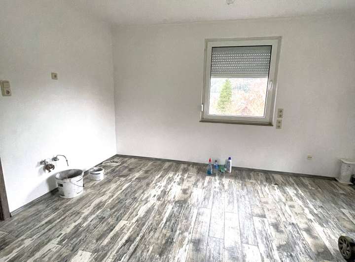 Vollständig renoviertes, modernes Einfamilienhaus in Rodalben. Das Erdgeschoß besteht aus großem Wohn-/Esszimmer, Badezimmer und Küche.