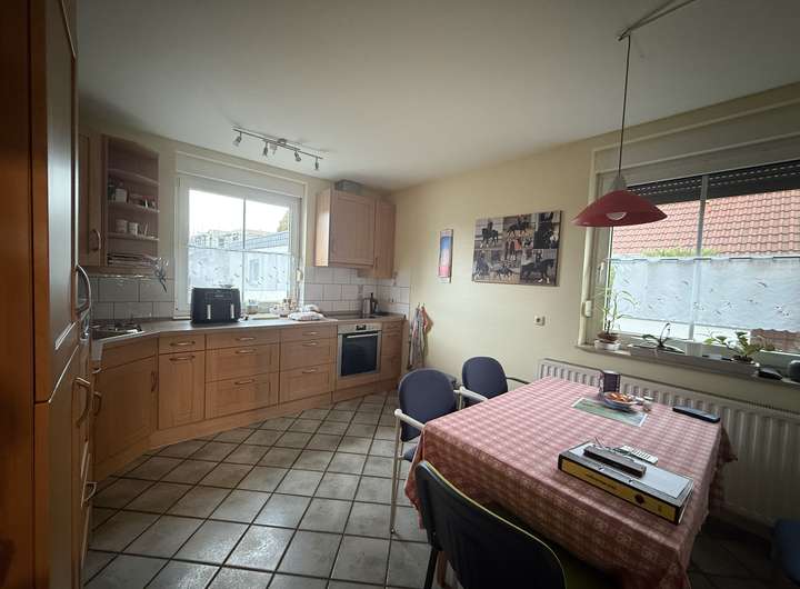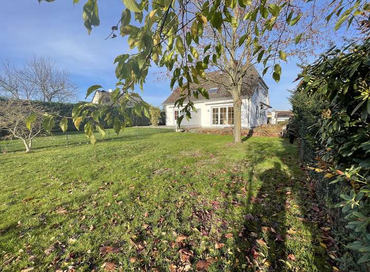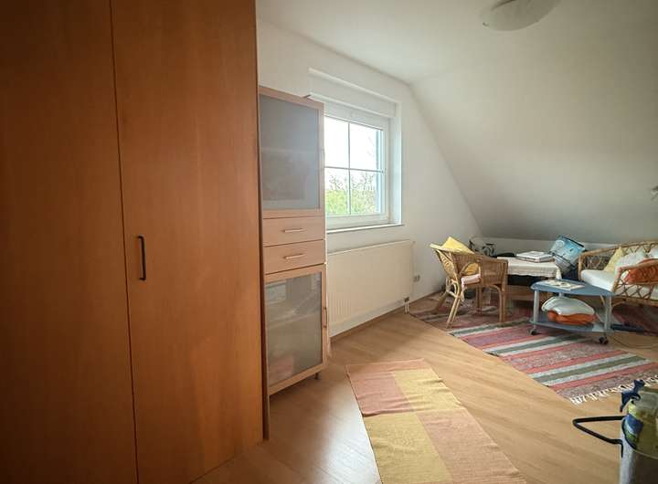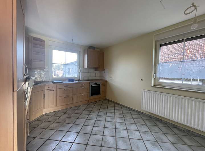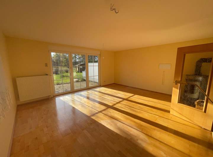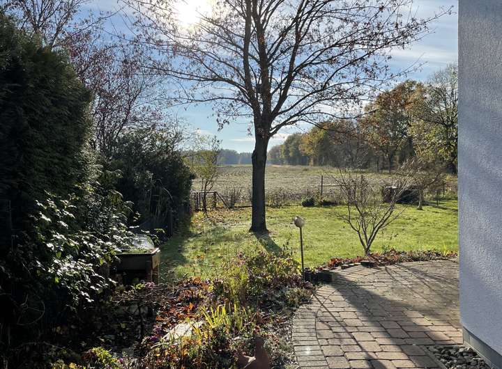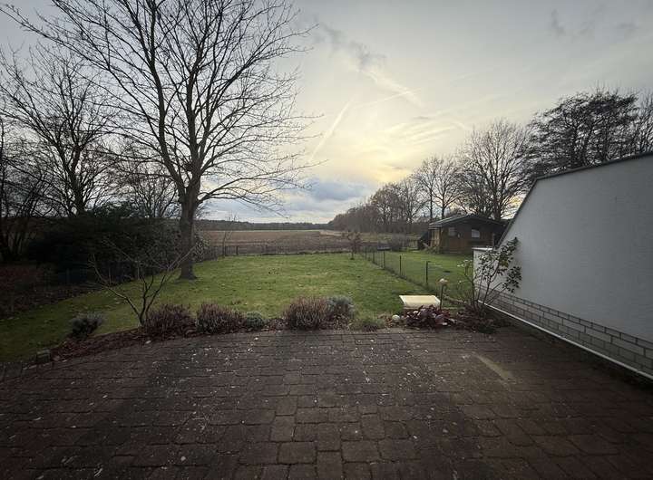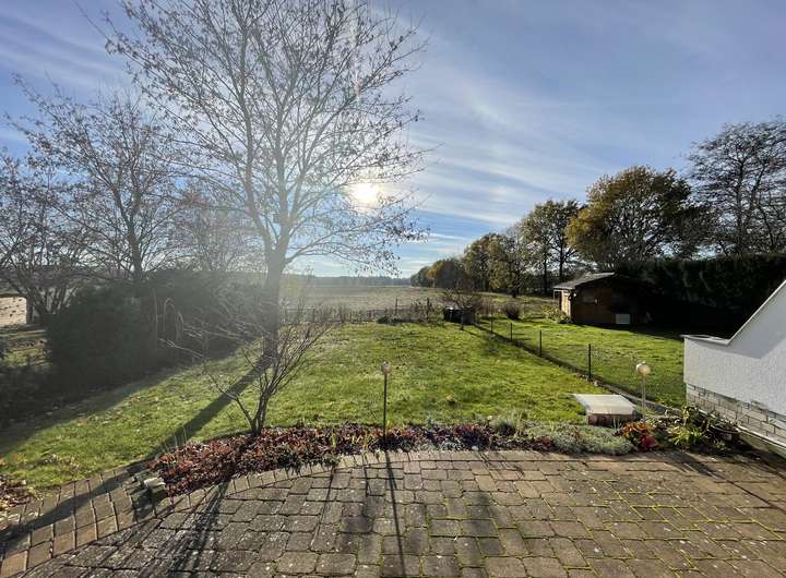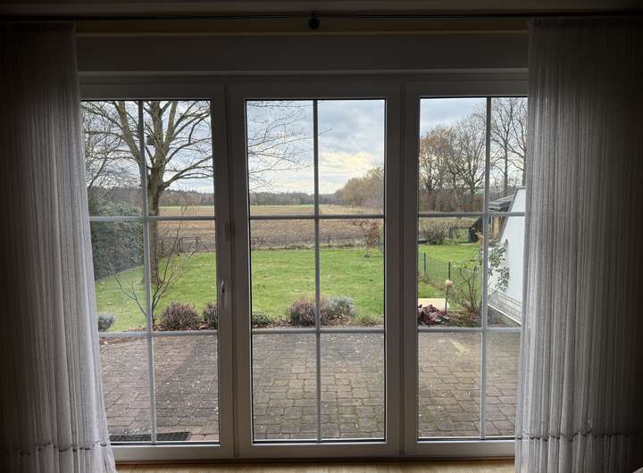 Das Wohnzimmer hat einen fantastischen Ausblick auf die Nienhagener Felder unf besitzt Einein eigenen Kamin. Das Haus, der Garten und die Garage sind in super Zustand. Zudem ist das Haus top isoliert und die großzügige Wohnküche ist voll ausgestattet.
