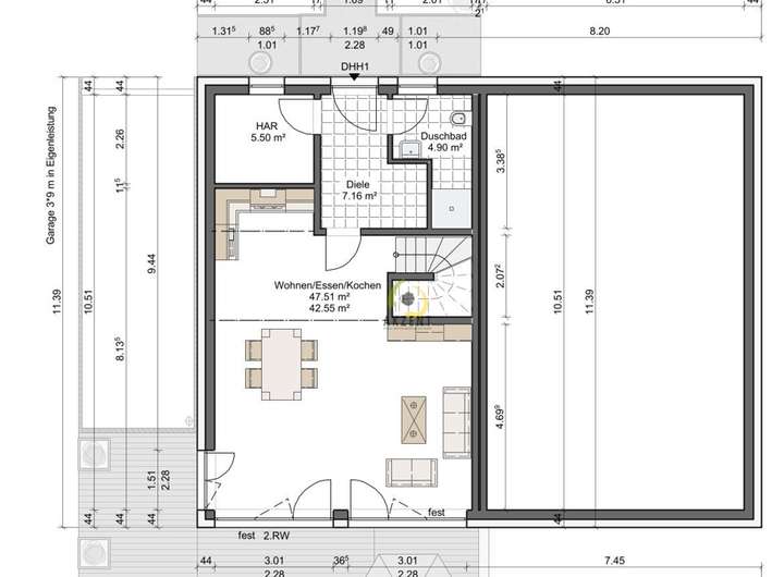 Die Doppelhaushälfte wird zu einem Preis von 350.000,00 € angeboten. Die Baunebenkosten sind im Preis nicht enthalten und belaufen sich auf ca. 38.000,00 €.