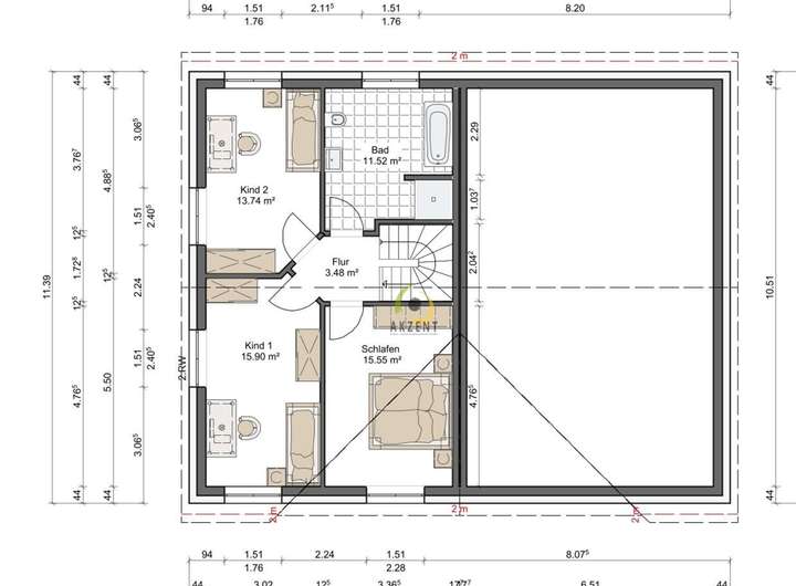 Der Werkvertrag für die Bebauung mit einem Doppelhaus mit zwei Vollgeschossen und ca. 119 m² Wohnfläche wird mit der Firma Fibav abgeschlossen.