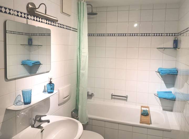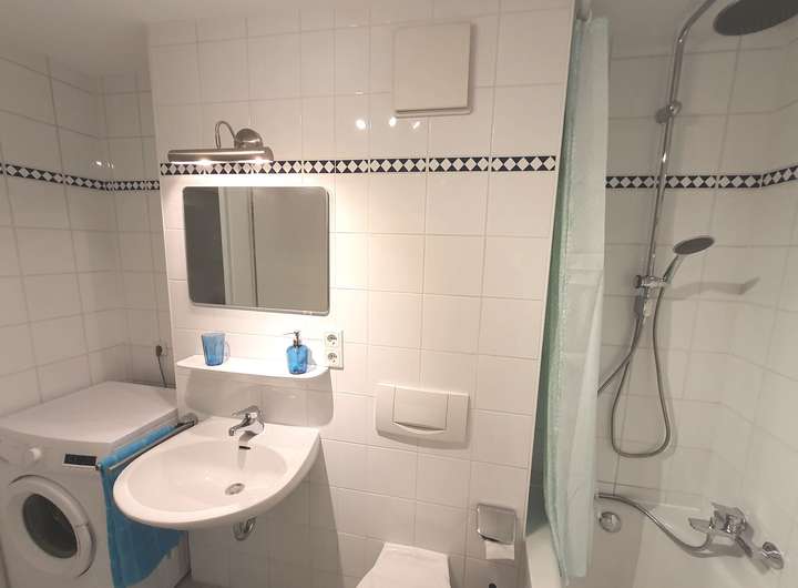 - Bad mit Badewanne, WC, Waschbecken, Waschmaschine