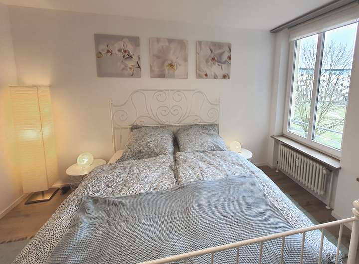 - Schlafzimmer mit Doppelbett 1,6x2m und Kleiderschrank