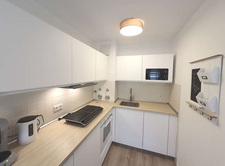 - Einbauküche komplett ausgestattet mit Backofen, Ceranfeld, Kühlschrank, Mikrowelle, Spülmaschine.