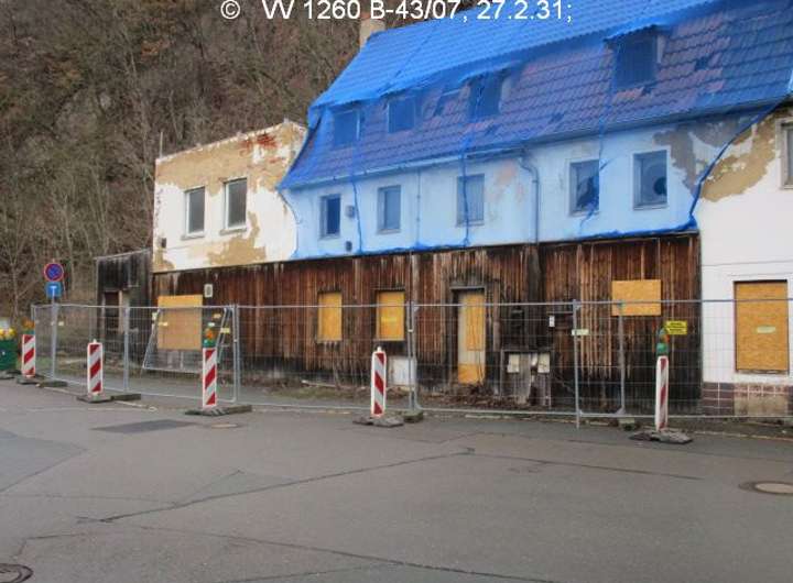 Die Bebauung umfasst ca. 95% der Grundstücksflächen. Direkt nordöstlich anschließend befindet sich ein steiler Hang auf öffentlichem Grundstück. Die aufstehenden Gebäude befinden sich in einem sehr maroden Bauzustand. Aufgrund der damit verbundenen Einsturzgefahr ist eine Begehung der Gebäude nicht möglich. Die Bausubstanz muss aufgrund der Bauschäden mittelfristig abgerissen werden, um Gefahren für Leib und Leben und die öffentliche Sicherheit abzuwenden. Zu den allgemeinen Verfahrensweisen vor einem Abriss sind hier zusätzlich zu klären: Klärung des Grenzverlaufs des giebelseits angrenzenden Nachbargrundstücks mit der Hausnummer 99 und statische Auswirkungen eines Abrisses auf das Nachbarhaus, Klärung zur notwendigen Hangsicherung.