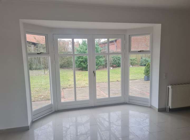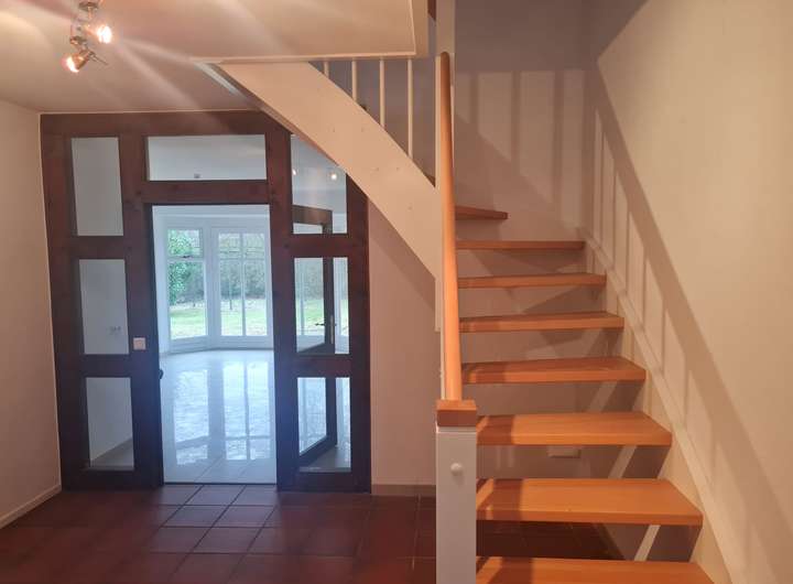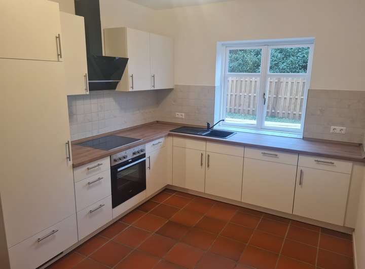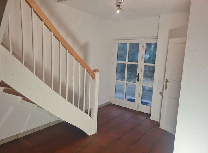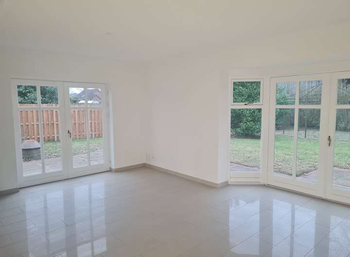 Die frisch renovierte Doppelhaushälfte verfügt auf 125 m² Wohnfläche im Erdgeschoss über ein lichtdurchflutetes, großes Wohnzimmer, eine neue Einbauküche, einen Hauswirtschaftsraum sowie ein Gäste WC.