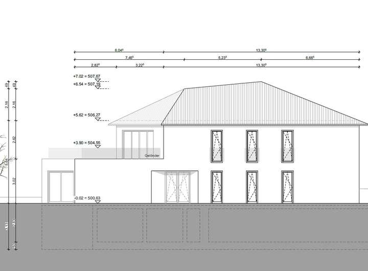 Im Erdgeschoss des Hauses darf eine 4 ZKB Gartenwohnung mit Netto 135,00 qm bebaut werden. Im Obergeschoss ist die Bebauung einer 4 ZKB mit 133,00 qm Netto Wohnfläche genehmigt.