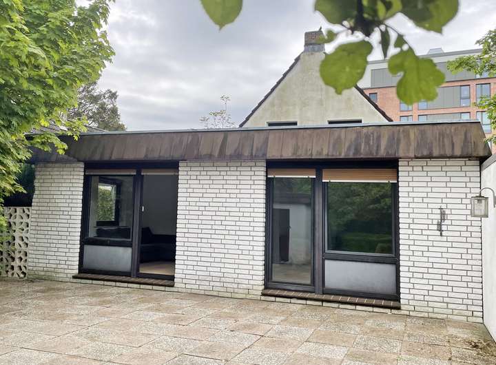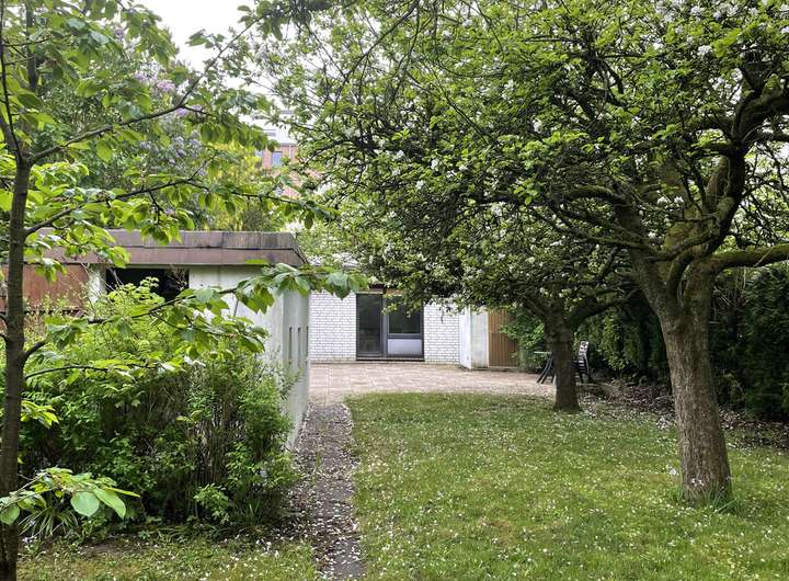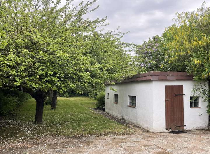 Das Haus wurde ursprünglich 1934/1935 mit einem Teilkeller gebaut. 1983 wurde es um einen Anbau erweitert und eine zweite Garage wurde neben dem Haus in Grenzbebauung errichtet. In den letzten Jahren wurde das Haus laufend instand gehalten, renoviert und umgebaut, so ist der heutige großzügige Grundriss entstanden. Nach dem Umbau wurden im Erdgeschoss drei Räume geöffnet und zu einem Raum zusammengelegt. Eine erneute Abtrennung ist möglich, sodass z. B. zwei Gäste- und ein Arbeitszimmer entstehen könnten. Die ehemalige Küche dient jetzt als Esszimmer und schließt direkt an den Anbau an. Hier liegen ein weiterer Flur, eine offene Küche, ein Tageslichtvollbad und ein Wohnzimmer. Über den ersten Flur gelangen Sie in das Dachgeschoss. Auch hier wurden zwei Zimmer geöffnet und vor ca. zwei Jahren ein modernes WC eingebaut. Jetzt stehen Ihnen zwei großzügige Schlafräume zur Verfügung. Der Spitzboden dient als geräumige Abstellfläche. Das Grundstück ist eingezäunt und der Garten wurde sichtgeschützt mit Rasenflächen sowie Obstbäumen angelegt. Die Garage aus dem Jahr 1963 wird jetzt als großzügige Abstellfläche für Gartengeräte und Gartenmöbel genutzt.